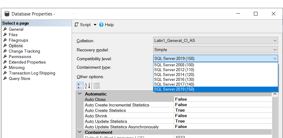 | Private answer Esta questão encontra-se em análise, no entanto de forma a contornar de imediato será necessário alterar o compatibility level da base de dados no SQL Management Studio (img).
