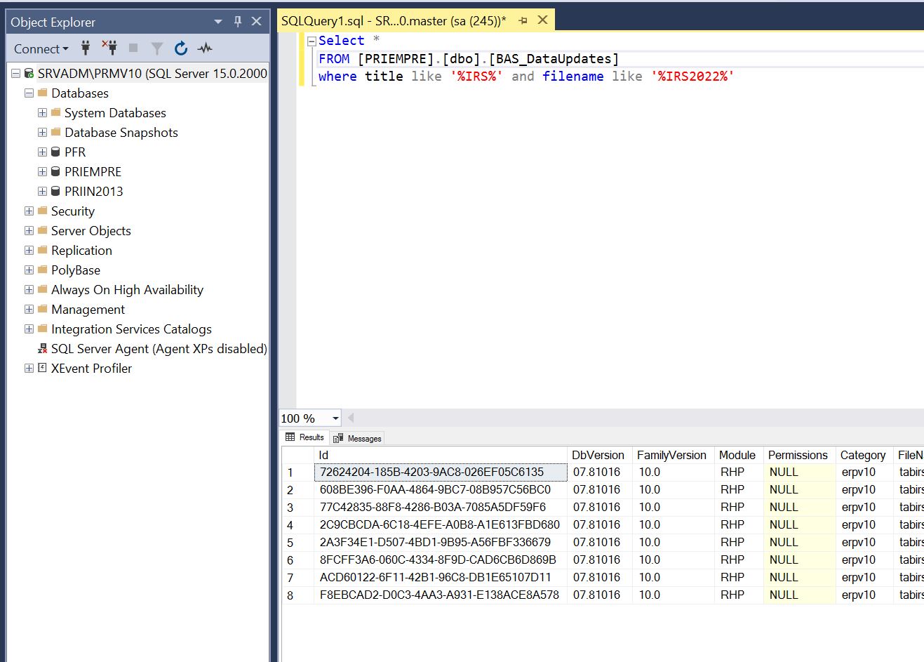 | ♥ 0 | Olá a todos, A Cegid tem a seguinte mensagem: Sempre usei o Dataupdate mas que não tem estado a funcionar e pelo tenho visto pelo Forum não sou caso único. Estes ficheiros SQL como executo isso? É só abrir directo, colocar as credencias no SQL Management Studio quando abre e pronto? Se for manualmente no Studio deve ser executado em que BD? Na priempre ou na outra? Na mensagem fala na introdução pelo ERP mas não encontro a opção. Obrigado Marked as spam |