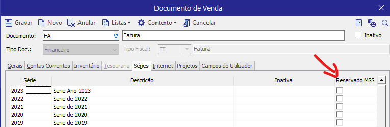 | ♥ 0 | Bom dia, Na configuração das séries dos Documentos de Venda, ao lado da coluna Inativa tem uma nova coluna: Reservado MSS Esta coluna serve apenas para assinalar que é uma série usada no MSS? Ou tem mais alguma utilidade? Obrigado Marked as spam |