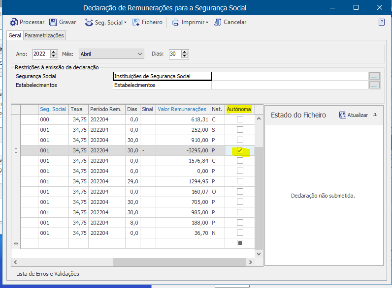 O que a segurança social deve estar a pedir é uma DR autónoma. Pode verificar o Help Center no link https://helpcenter.primaverabss.com/v10/recursos-humanos-1/salarios-honorarios/processamento/artigo/em-que-situacoes-se-deve-entregar-a-declaracao-de-remuneracoes-autonoma/ O ERP deverá criar a DR autónoma, que vai no mesmo ficheiro, mas num novo R1. Caso o ERP não esteja a marcar as linhas como autónomas e devia, tem que analisar o porquê das mesmas não estarem dessa forma. No entanto e para entregar a DRi, deverá assinalar manualmente as linhs que pretende que sigam em DR autónoma. Em anexo uma imagem do campo que deve assinalar.