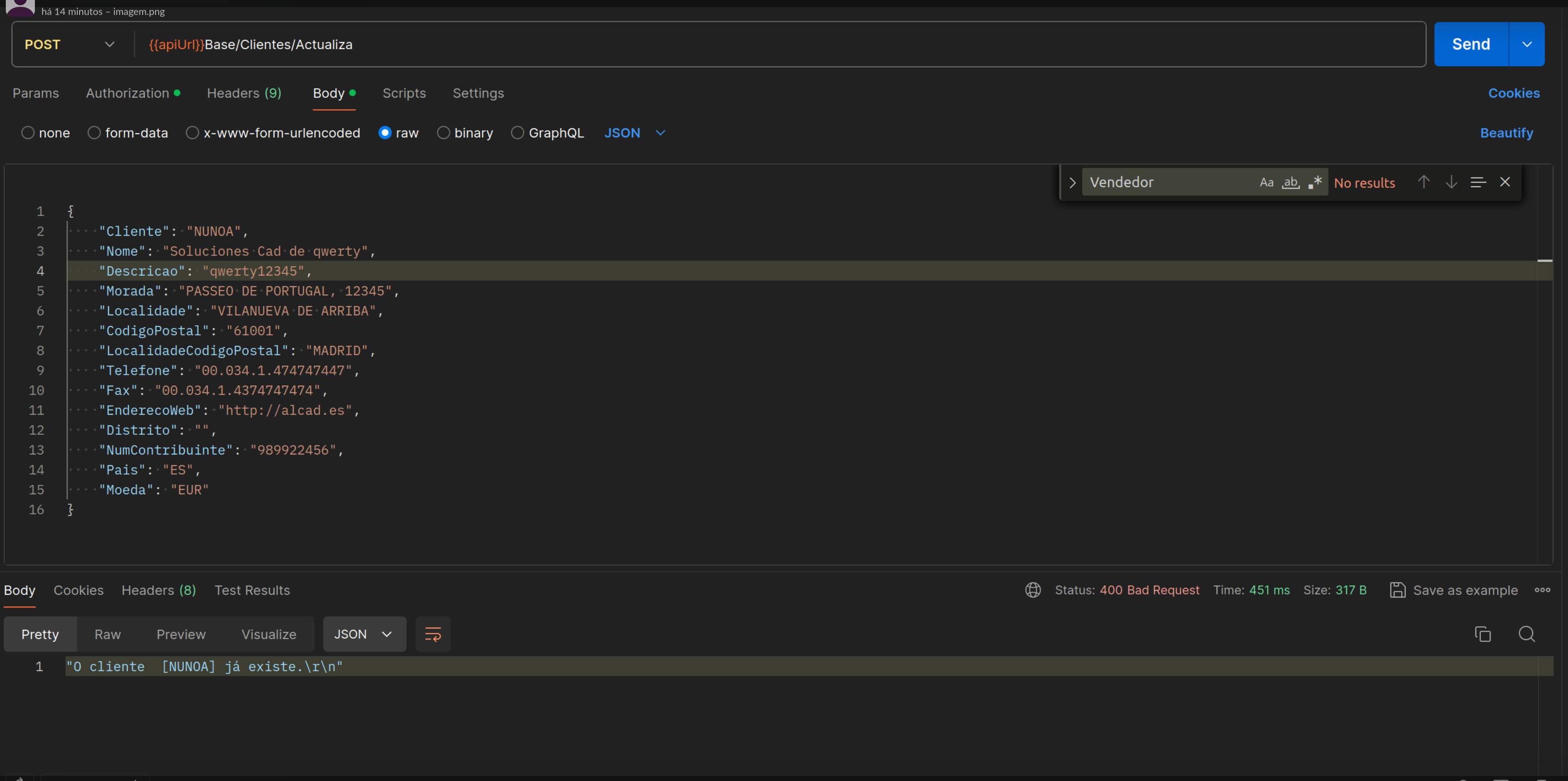 Quando tento atualizar um cliente, recebo um erro a indicar que o cliente já existe. O mesmo acontece para os itens. Poderia fornecer alguma orientação sobre como resolver este problema?