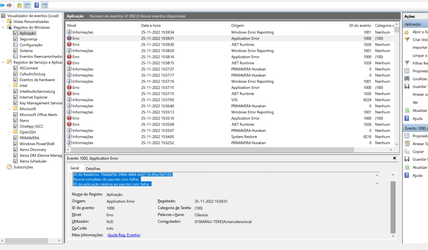 Nome da aplicação com falha: Erp100LP.exe, versão: 10.10.0.4267, carimbo de data/hora: 0x634574b2 Nome do módulo com falha: KERNELBASE.dll, versão: 10.0.19041.2193, carimbo de data/hora: 0x7f7062e1 Código de exceção: 0xe0434352 Desvio de falha: 0x000000000002cd29 ID do processo com falha: 0x3c44 Hora de início da aplicação com falha: 0x01d900e6dea8c726 Caminho da aplicação com falha: C:\Program Files\PRIMAVERA\SG100\Apl\Erp100LP.exe Caminho do módulo com falha: C:\WINDOWS\System32\KERNELBASE.dll ID do Relatório: 76de825b-249d-4664-bd27-0c45ac6421db Nome completo do pacote com falha: ID da aplicação relativa ao pacote com falha: