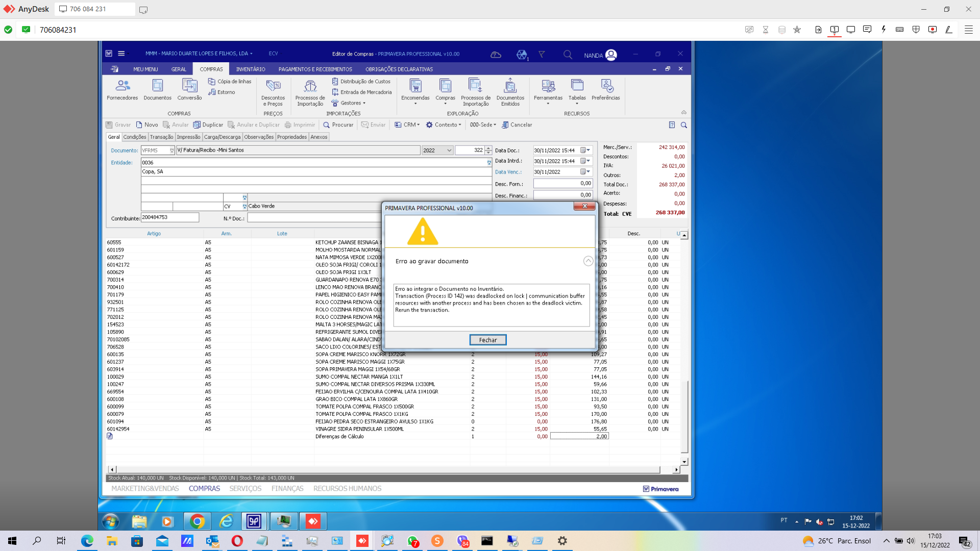 | ♥ 0 | Estou com um problema de lentidão e bloqueamento do sistema. Erro ao integrar documento no inventario