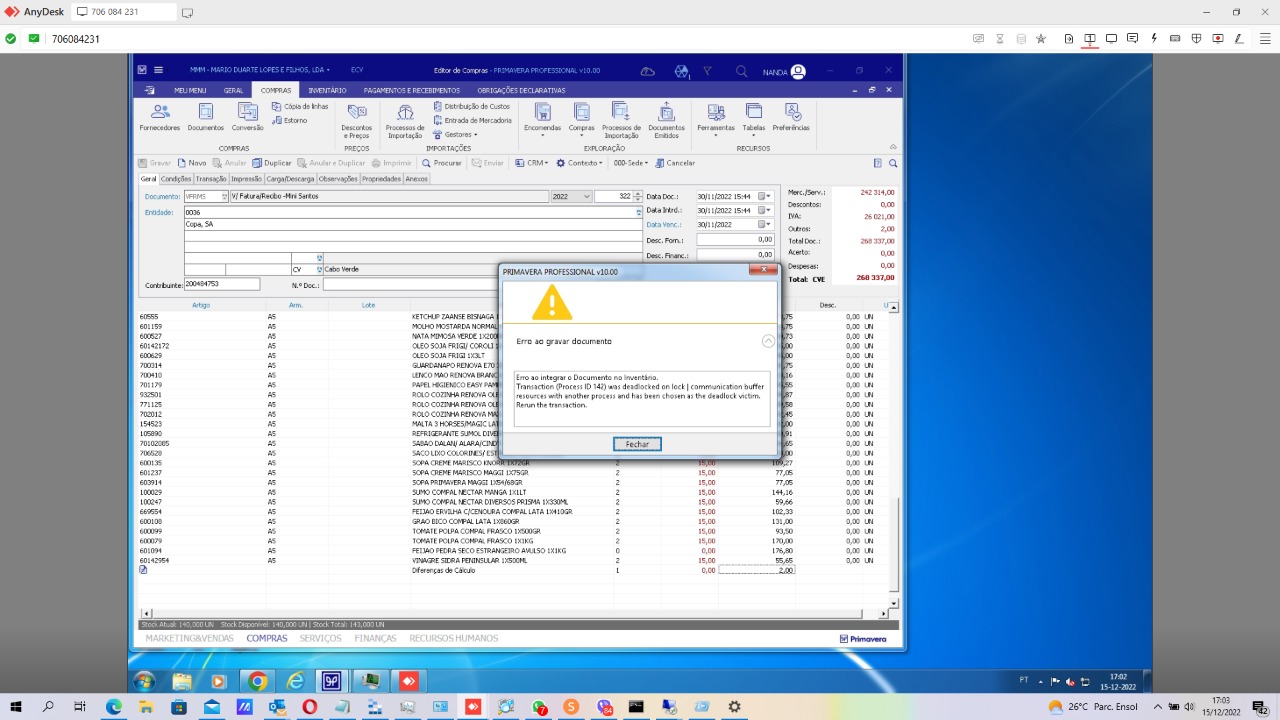 ERRO NO MODULO DE COMPRA