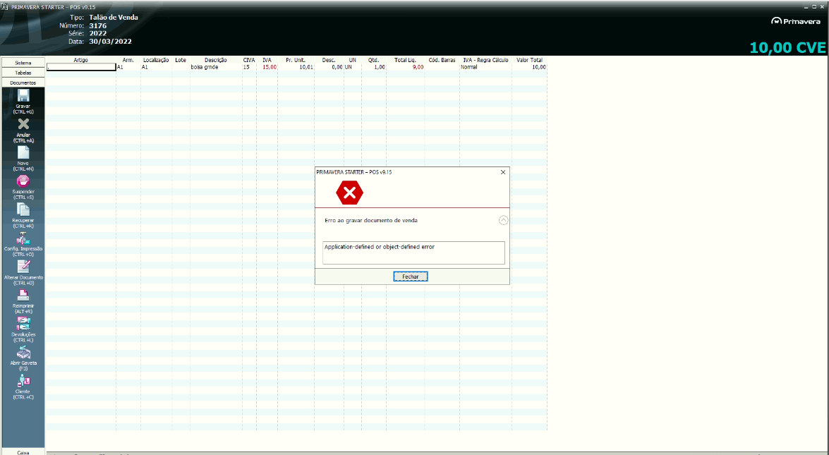 | ♥ 0 | Bom dia, Após atualizar a versão Starter para o Update com data de 24 de março fiquei com o erro (ver imagem no print) já não consigo vender no POS. Marked as spam |