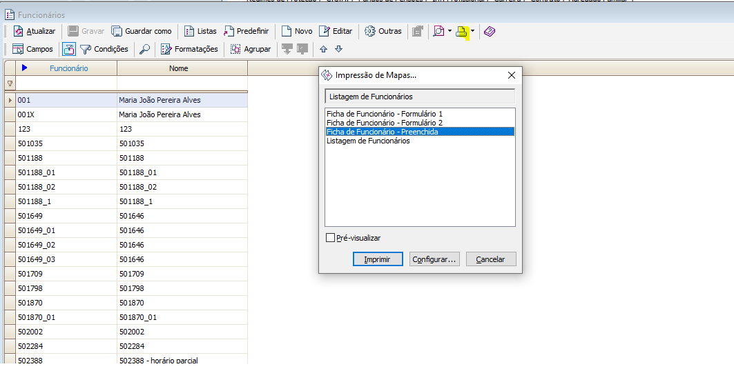 | Private answer Bom dia. Para imprimir os dados da ficha do funcionário: