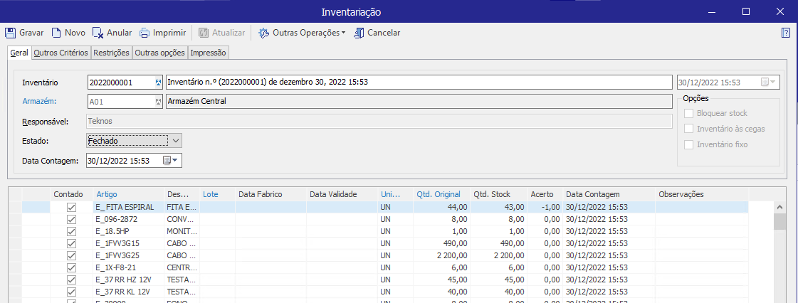 ♥ 0 | Bom dia, Estou a fechar uma inventariação, já fiz os passos certinhos que são: