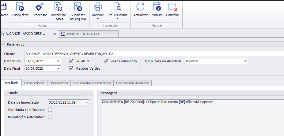 | ♥ 0 | Bom dia, No PAA aparece a msg de erro em anexo. Já efetuamos o mapeamento do documento e persiste.