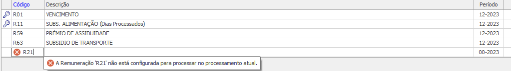 Num dos casos, quero adicionar uma remuneração extra, mas não consigo porque diz que não está configurada para este processamento que estou a fazer (Vencimento! mas no quadro da remuneração está lá o pisco).