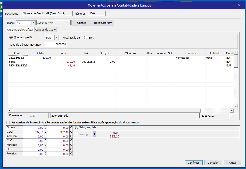 Mas então o que poderá estar a provocar no cliente, o facto de por vezes as contas de inventário não serem geradas, só após o recalculo manual do documento nos movimentos diferidos? Verifique se o serviço PRIMAVERA BOT está activo e se no monitor de operações não existem erros de execução.