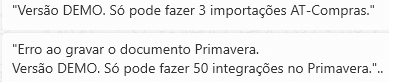 | Private answer Pelas mensagens apresentadas, diria que o licenciamento em causa tem um limite de nº de empresas no licenciamento de PAA. Ultrapassando esse limite aparecerá essa mensagem. Marked as spam |