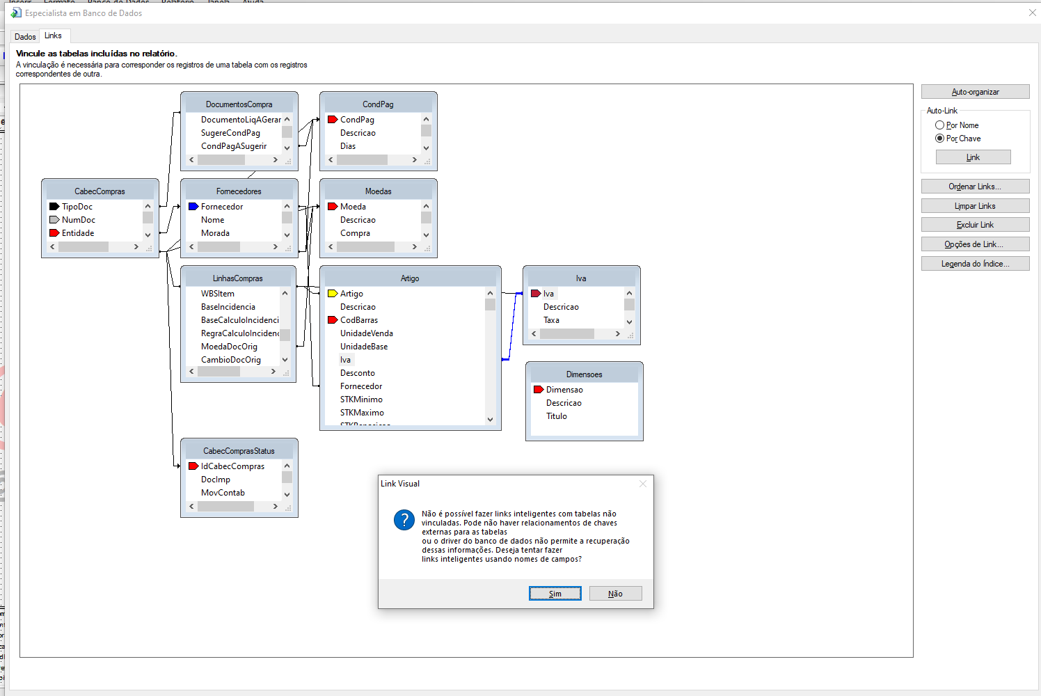 Adicionei a tabela de Dimensões onde vem Dimensão, descrição, título, a dúvida é qual qual tabela devo linkar na tabela de artigos tenho Dim1,2,3 e tipos de dimensão. tentei criar um link e aparece um alerta informando que não é possível fazer links inteligentes com tabelas não vinculadas, conforme o print em anexo.